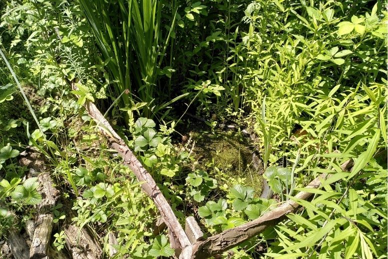 Naturnahe Gartenecke als Lebensraum für Amphibien.