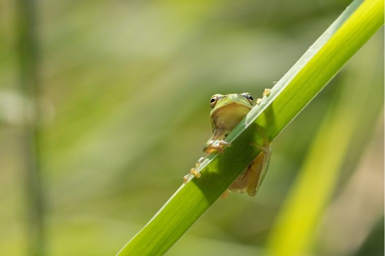Der Laubfrosch ist stark gefährdet. Obwohl seine Rufe zu den lautesten unter den heimischen Amphibien zählen, ist es ein Glücksfall, wenn er einen Gartenteich besiedelt.