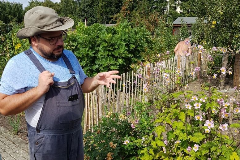 Der Vorsitzende Daniel Pawlack-Gast erläutert im Ruhrgebietsgarten die Ziele und Besonderheiten des Projekts.