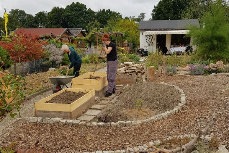 Engagierte Helferinnen und Helfer tragen tatkräftig zur Weiterentwicklung des Gartens bei.