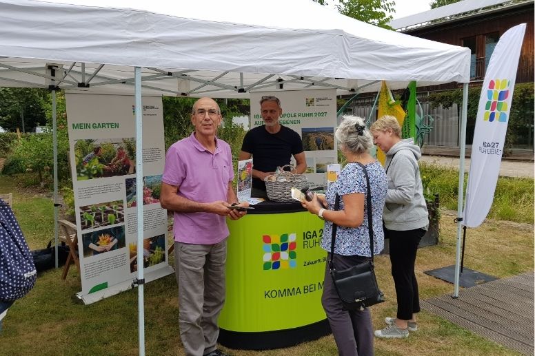 Am IGA-Stand informieren sich Besucherinnen und Besucher über kommende Projekte.