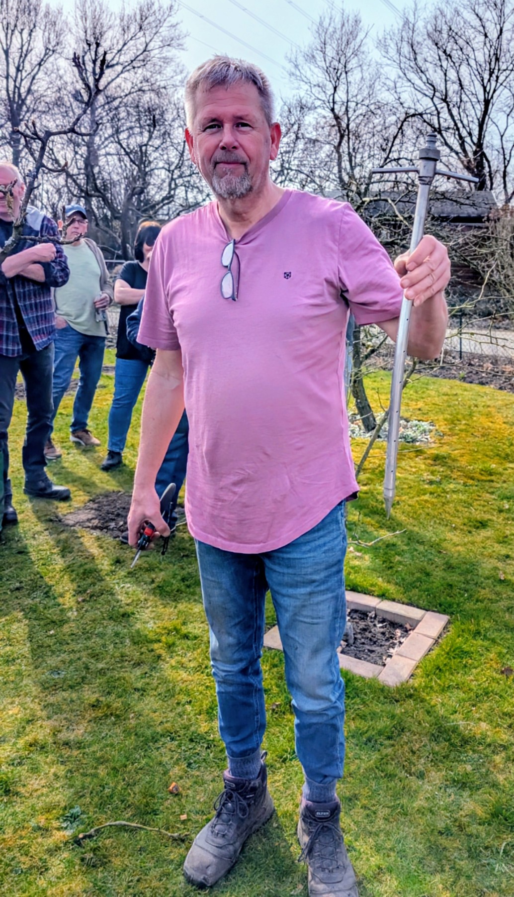 Jürgen Suttrup demonstrierte an mehreren Obstbäumen die Schnitttechniken und erklärte verschiedene Werkzeuge.